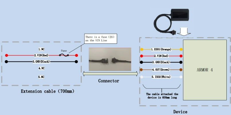 | VIN (Voltage In/Power) | Red | 9-90V Power Source |