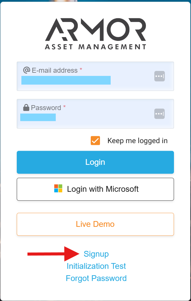 To get started with self-signup on the ARMOR Asset Management platform, follow these steps: