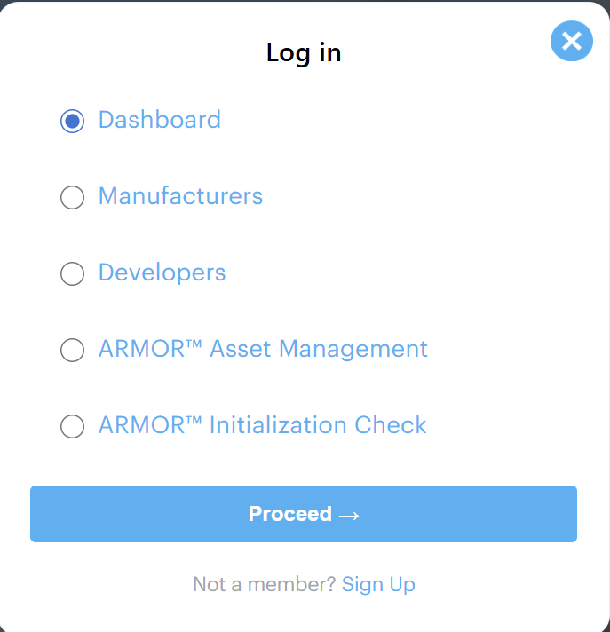 https://armordata.com → Login → DashboardSign in using your ARMOR credentials.